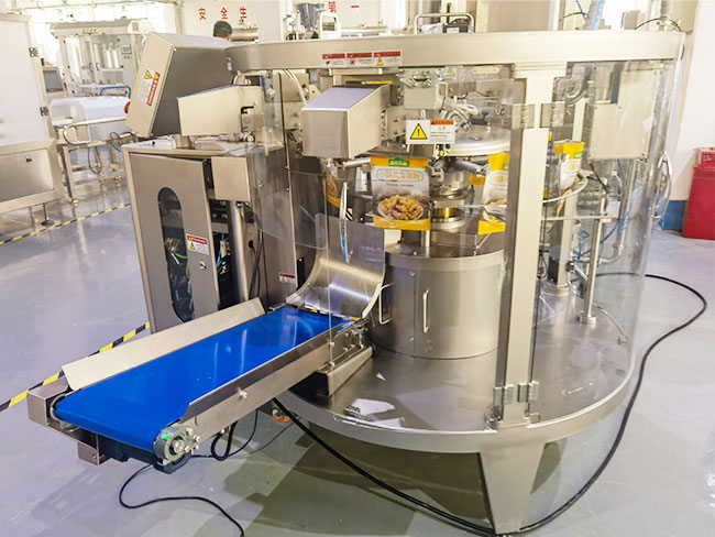 腌漬肉滑自動包裝機是通過U型料箱進(jìn)行均勻攪拌,使其肉料更加的均勻,核心部分采用的是PLC可編程控制,它能夠?qū)崟r采集物料信息的重量,并通過軟件傳輸給顯示屏幕,讓用戶更加清晰了解生產(chǎn)過程,當(dāng)信息設(shè)定達(dá)到與預(yù)設(shè)重量信息一致時,料箱停至供料,給袋機將旋轉(zhuǎn)至封口處,通過恒溫加熱的方式,快速完成封口條件,在冷卻后快速定型,然后由腌漬肉滑自動包裝機的輸送帶送出,完成全部的生產(chǎn)過程。