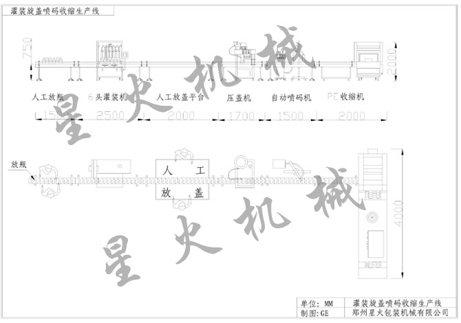 >> 人工放瓶6灌裝壓蓋噴碼PE收縮機(jī)