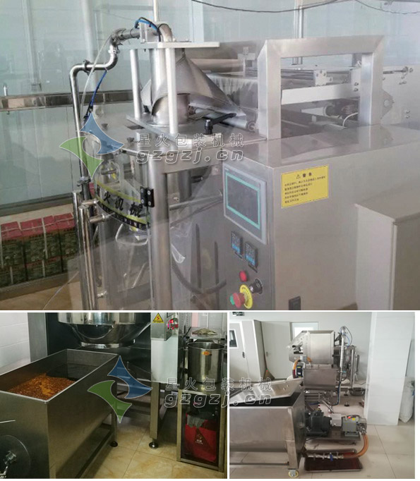 麻辣串底料包裝機(jī)屬于火鍋底料包裝機(jī)系列,由料缸攪拌機(jī)、半自動醬料灌裝機(jī)、醬料包裝機(jī)三部分組成;一次性完成自動制袋、計(jì)量、灌裝、封口等過程;還能夠針對串串香湯料、麻辣燙底料、蘸醬等各種配料進(jìn)行生產(chǎn),滿足企業(yè)的不同產(chǎn)品的生產(chǎn)和需要
