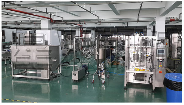 全自動(dòng)色拉醬醬料包裝機(jī)械車間展示