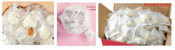 2.自動化奶棗枕式包裝設備雙膜卷自動送膜、平板熱封、四邊封合,且封合牢固,袋型平整、精美。