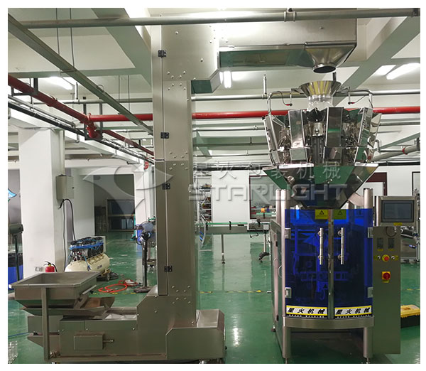 2、全自動牛肉干包裝流水線適用包裝顆粒料,如大米,玉米,牛肉干,魚丸,膨化食品。
