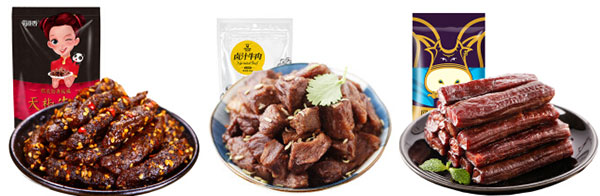 自動化大型全套牛肉干包裝機(jī)械樣品展示