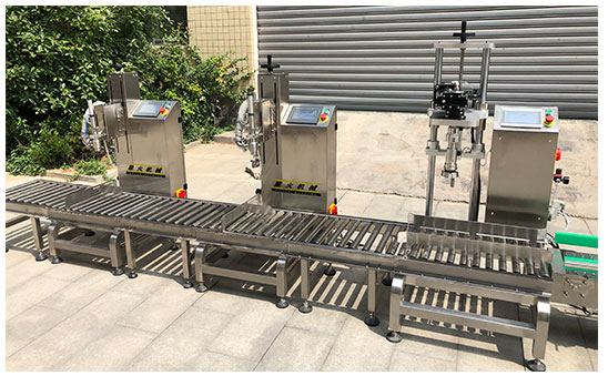 自動稱重式灌裝旋蓋生產(chǎn)線/桶裝稱重灌裝線的工作流程:自動稱重式灌裝旋蓋生產(chǎn)線在高過大氣壓強的情形下開展罐裝,也可分成二種:一種是貯液主缸的壓力與瓶內(nèi)的工作壓力同樣,根據(jù)液態(tài)自身的凈重引入瓶內(nèi),稱之為隔熱保溫全過程罐裝;另一種是貯液主缸的工作壓力高過瓶內(nèi)的工作壓力,液態(tài)根據(jù)壓力差引入瓶內(nèi),這類辦法多用以迅速生產(chǎn)流水線。