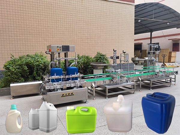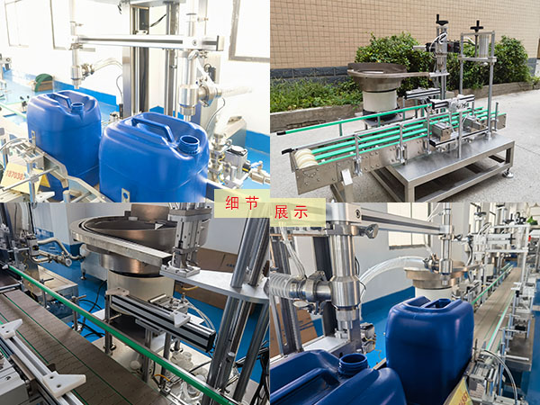 4、稱(chēng)重定量:雙頭稱(chēng)重灌裝設(shè)備采用快、中、慢、微量四個(gè)階段的定量灌裝模式,配合高精度稱(chēng)重感應(yīng)裝置,可對(duì)灌裝容器進(jìn)行自動(dòng)去皮后執(zhí)行不同規(guī)格的容器灌裝一致性的物料標(biāo)準(zhǔn)。