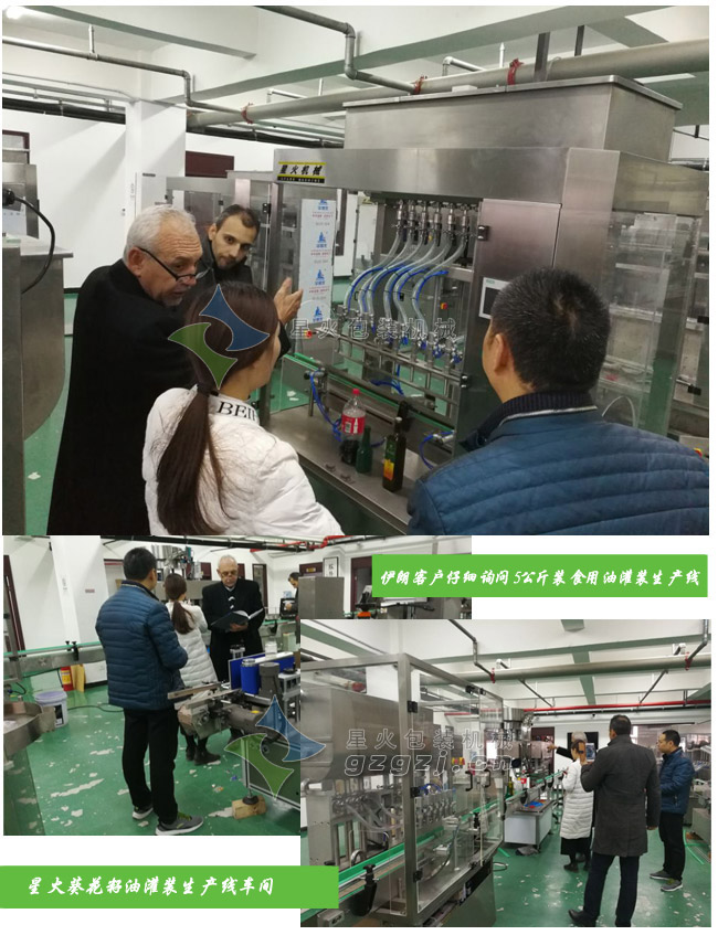 目前市面上常見的食用油包裝多數(shù)是5L即5公斤包裝的,我們星火包裝機械也專門推出了針對5L裝食用油的灌裝生產(chǎn)線設(shè)備,這條灌裝生產(chǎn)線有灌裝機-壓蓋機-貼標機-噴碼機等設(shè)備組成,一上市就受到廣大油類生產(chǎn)商的追捧,伊朗的客戶再經(jīng)過電話簡單了解之后也專程來到我們的車間參觀并進行了詳細的咨詢