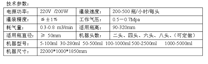 4、灌裝生產(chǎn)線設備灌裝機采用快慢雙速控制閥,快慢雙速灌裝速度可自行調(diào)節(jié),操作方便,灌裝時不起泡不外溢。